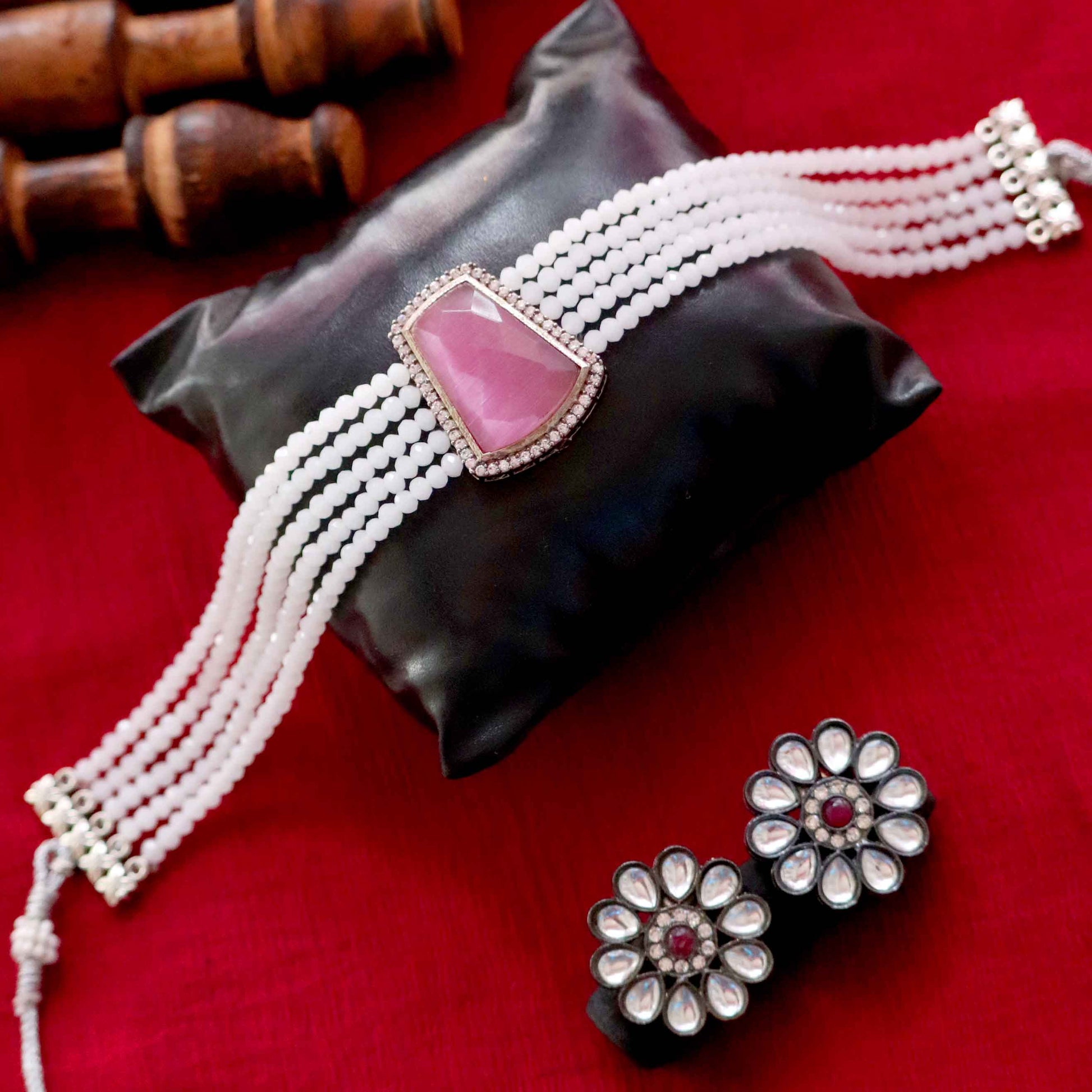 Janaksh AD and kundan work Victorian style chokar necklace set