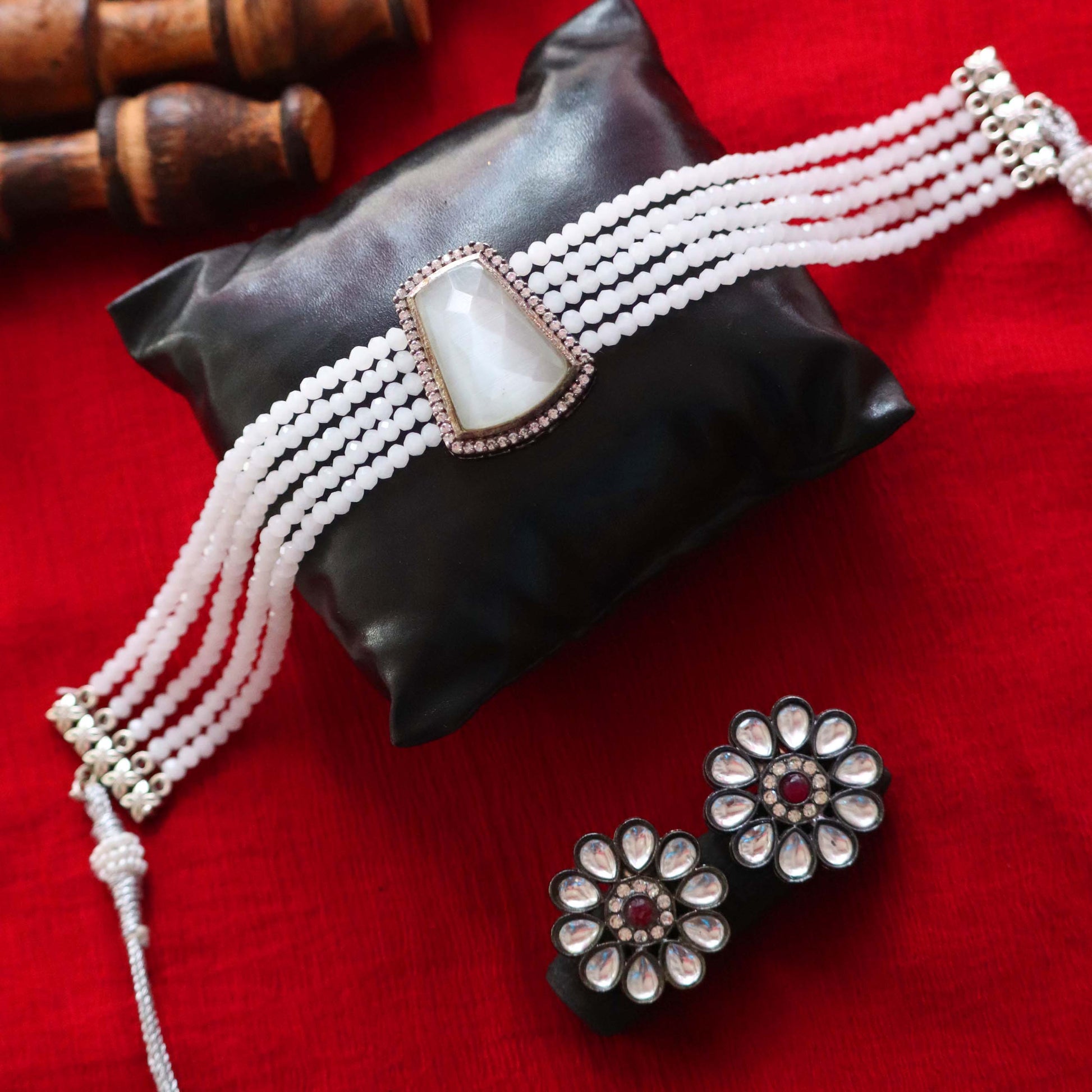 • Style: Victorian Chokar Necklace Set with matching flower Earrings